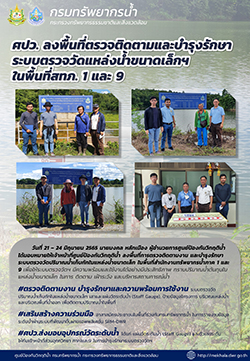 ศปว. ลงพื้นที่การตรวจติดตามงานและบำรุงรักษา ระบบตรวจวัดปริมาณน้ำเก็บกักในแหล่งน้ำขนาดเล็ก ในพื้นที่สทภ. 1 และ 9